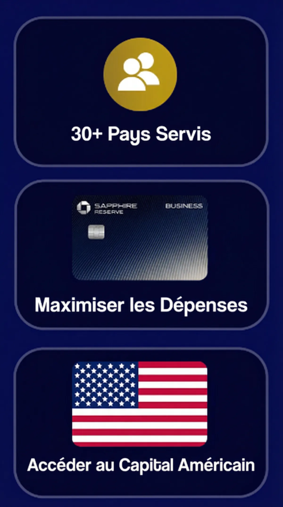 Carte USA est notre programme premium pour les entrepreneurs sérieux. Il combine des stratégies de crédit avancées, du "travel hacking" et l'accès à notre réseau de propriétaires d'entreprises non américains utilisant le crédit américain.