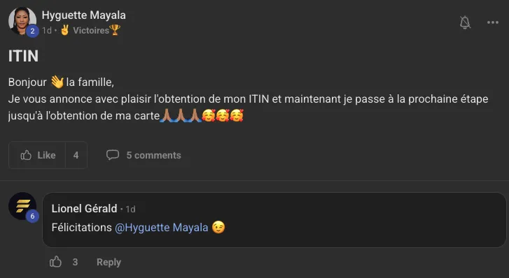 Le soutien est fourni par le biais d'un accompagnement individuel, de ressources de groupe et de canaux de communication dédiés. Selon votre programme, cela peut inclure téléphone, WhatsApp et notre communauté privée Skool.